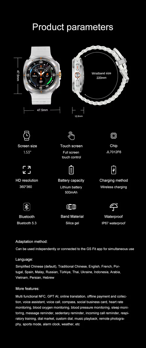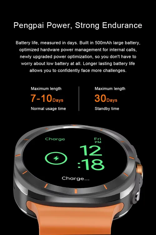 With a stunning 1.53-inch HD screen that lights up like a mini cinema, it’s built tough with IP68 waterproofing—swim, sweat, or dance in the rain, it won’t flinch! 🌧️ The 500mAh battery? It lasts up to 10 days on a single charge (wireless, of course!)—no more panic over dead devices.